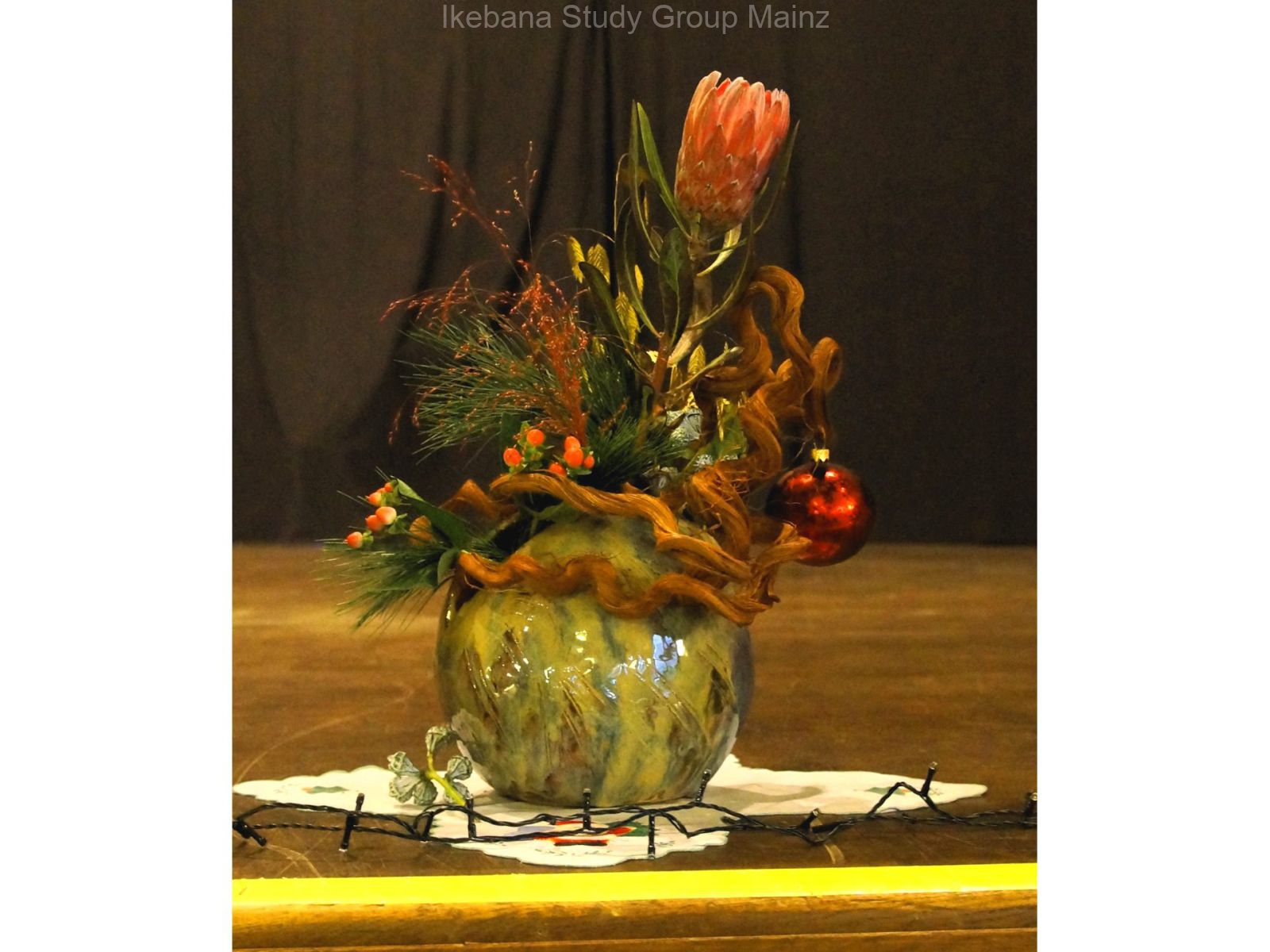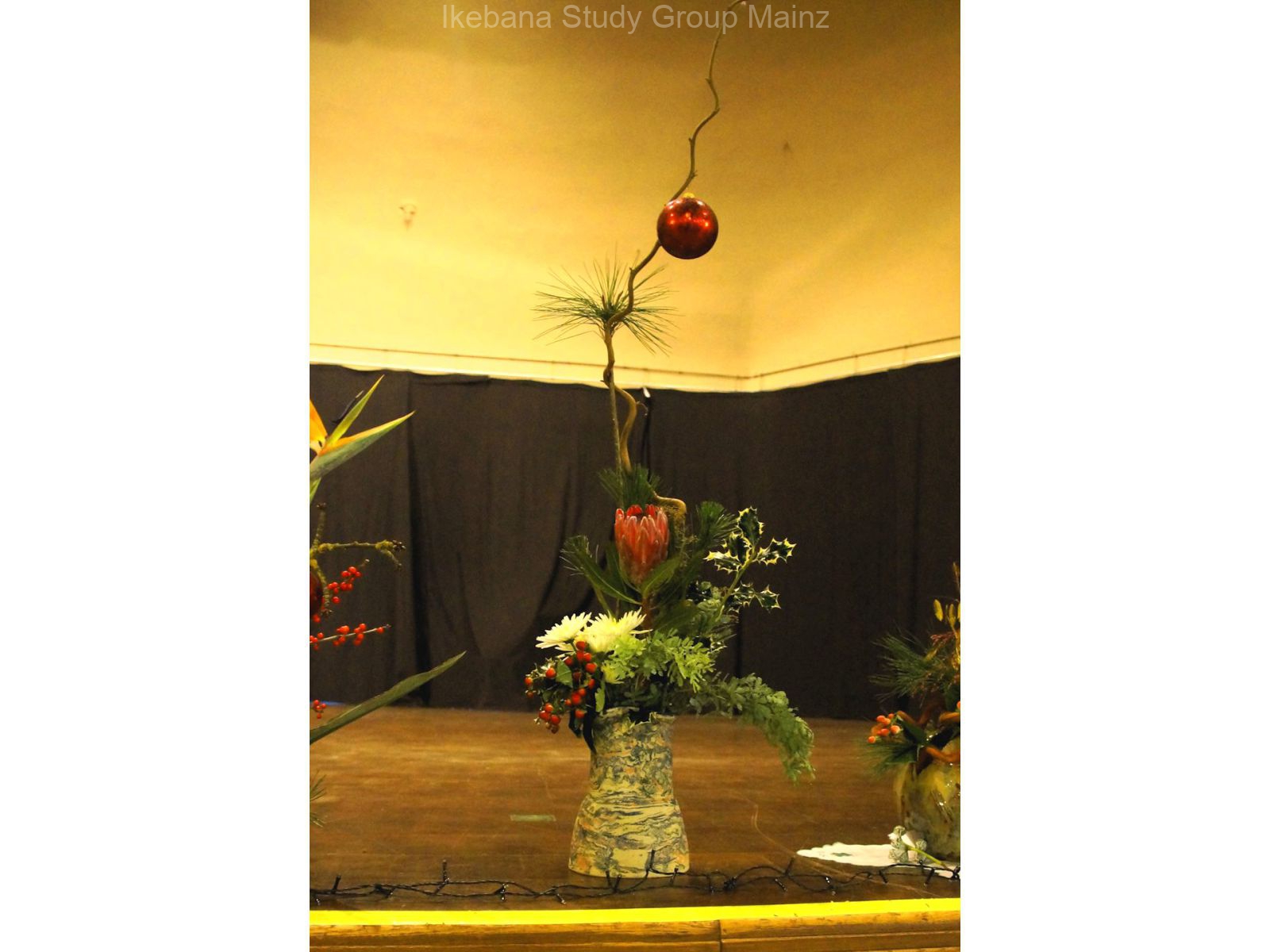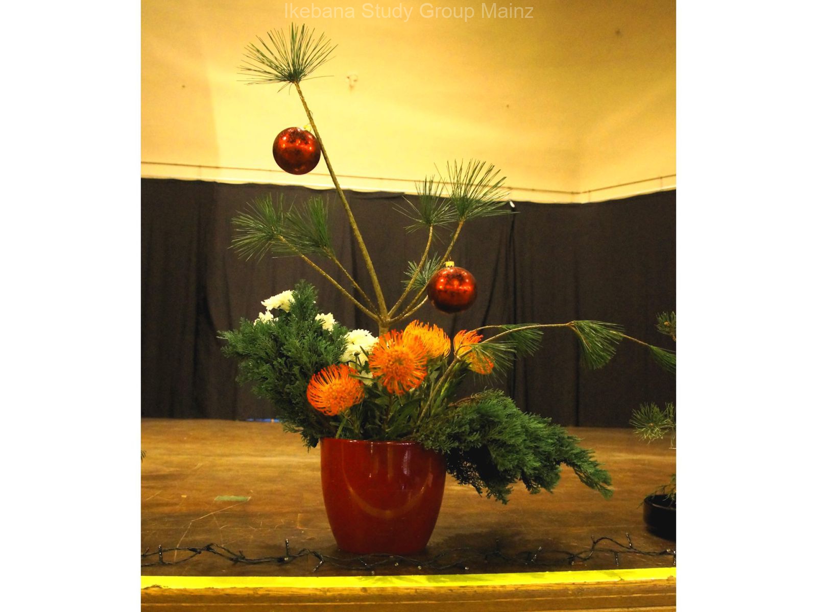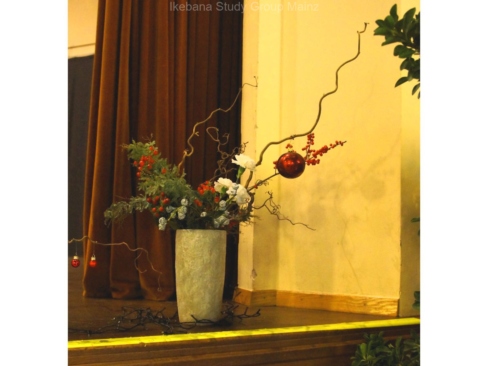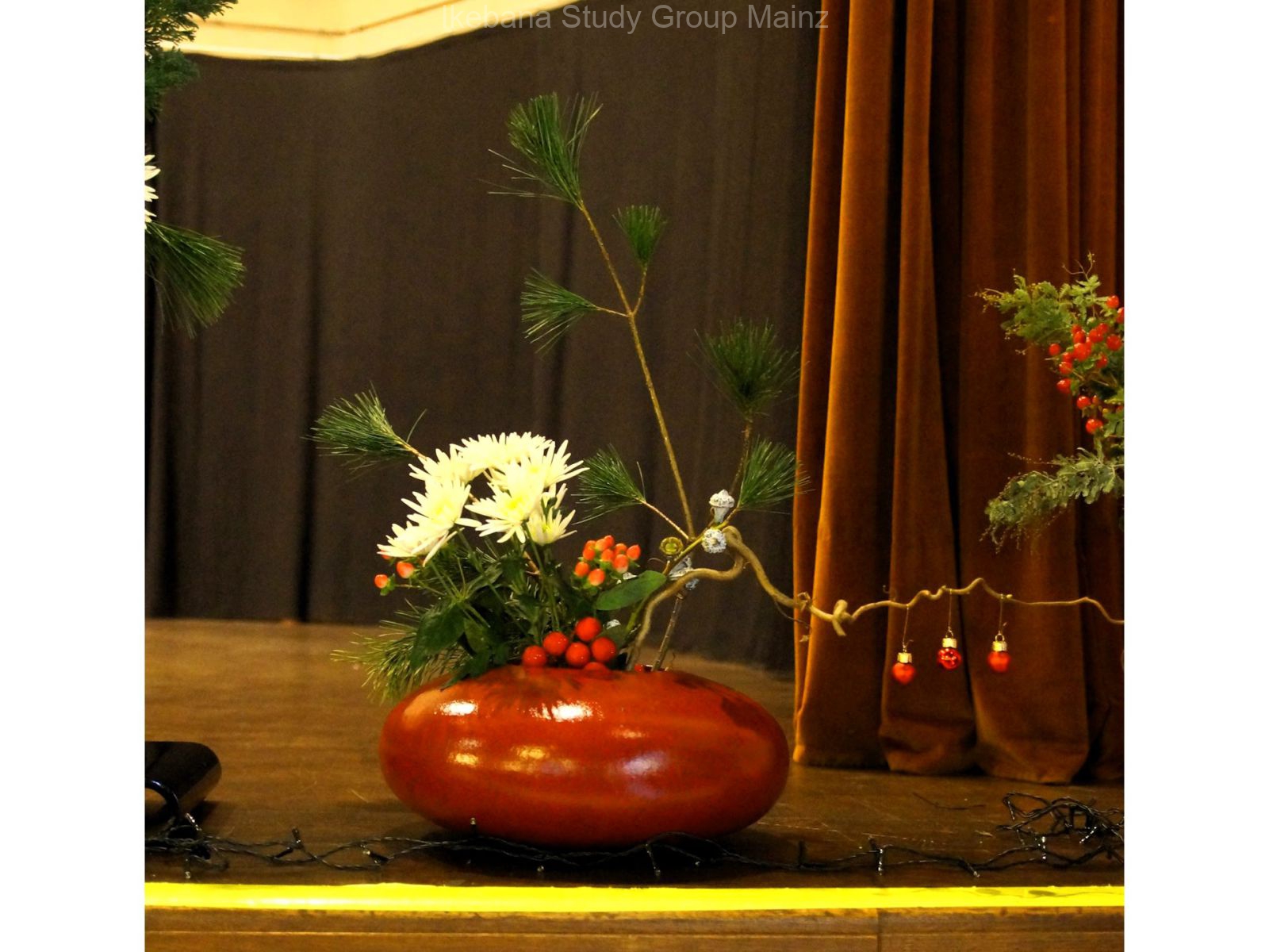 2024 Ausstellung – weihnachtliches Ikebana als Bühnendekoration für Konzert